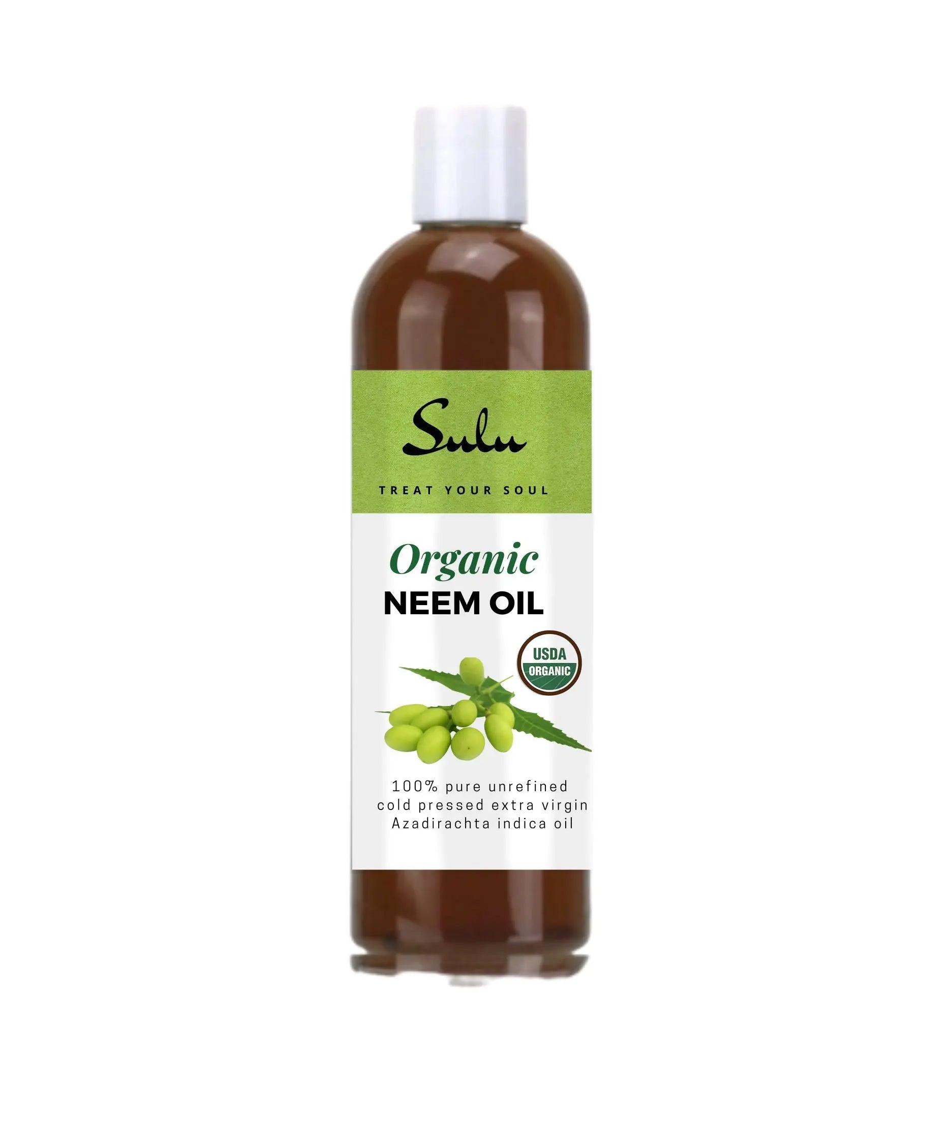 SULU'S Neem Oil is especially high in important fatty acids and vitamin E and is easily absorbed into the skin without leaving skin greasy. Once absorbed, these powerful properties work to rejuvenate the skin’s cells and restore elasticity.
