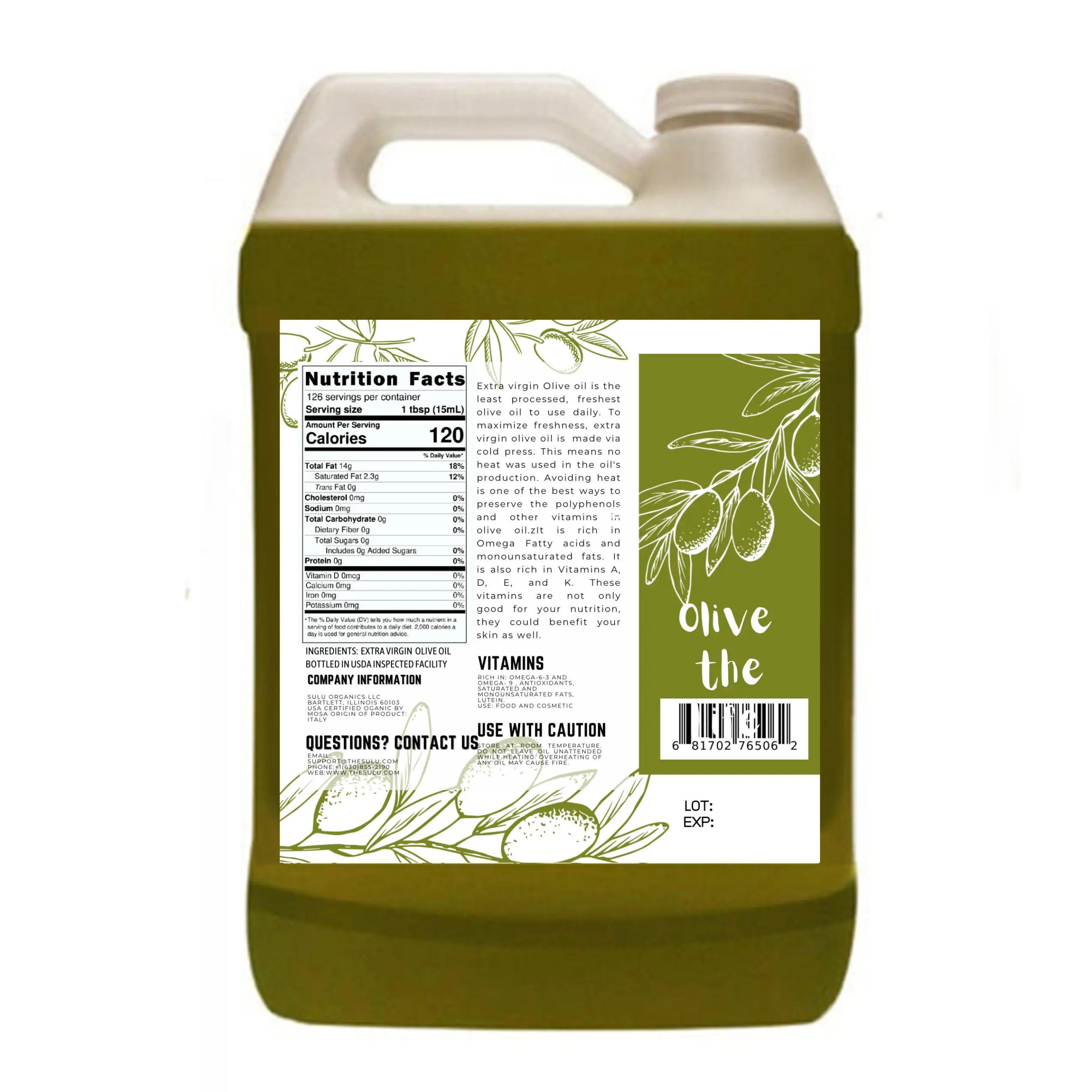 1 Gallon Extra Virgin Olive Oil- USDA Certified Organic Cold pressed Unrefined