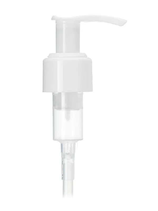 White PP plastic 24-410 smooth skirt up-lock head dispensing pump with 7.5 inch dip for plastic bottles: